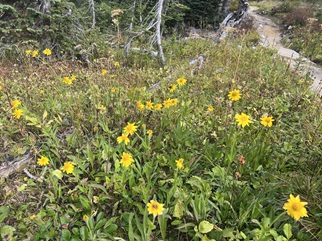 19) Ellsworth Creek trail system, Rollinsville, CO, July 15, 2025 - Jonna and Alan got Angela out for another training hike, this time with some elevation. We headed to one of our old favorites which is the network of trails in the Ellsworth Creek area near Rollinsville. We did the hike up to the Ellis Lode Mine and then did some wild flower spotting in the meadow just above it. A 3.9 mile up-and-back with 800 feet of elevation gain.