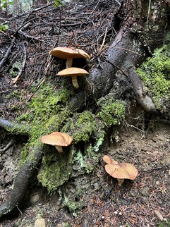 16) Homestead, Mesa and Towhee Trails, South Mesa Trailhead, Boulder Open Space & Mountain Parks, Boulder, CO, June 8, 2025 - Despite some dark clouds threatening rain we met up with our friend Desiree for another evening hike at our regular trail. As usual we parked at the South Mesa trailhead and then did our "short" loop: Homestead trail to Mesa trail to Towhee trail. The wildflowers are still in bloom so we were treated to a variety of white, purple and yellow flowers as we hiked. Unlike our spectactular elk viewing last weekend we didn't spot any awe inspiring critters - the only mammal we saw was a little baby bunny - but all the recent rain meant that mushrooms were popping up all over the hillside so that was my highlight for this hike. ...that, and not getting rained on! A 3.0 mile loop with 600 feet of elevation gain.
