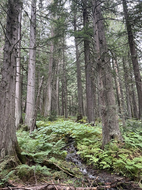 11) Hemlock Grove Boardwalk Trail, Glacier National Park, Revelstoke, BC, September 23, 2025 - From Glacier National Park we back-tracked west to Revelstoke National Park. During the drive we made a couple of stops to explore some easily accessible parts of Glacier National Park. The first was the Hemlock Grove Boardwalk which is a short loop through an old growth section of Hemlock forest. From the boardwalk we could enjoy mighty trees, thick fern ground cover and trickling streams.