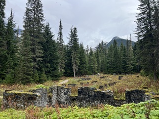 8) Asulkan Valley Trail, Glacier National Park, Revelstoke, BC, September 21, 2025 - In the evening, after setting up the RV, we walked over to the trailhead area to check it out. In the early 20th Century a huge lodge was built here by the Canadian Railway Company and operated as an alpine vacation resort. The lodge was eventually dismantled but the foundations remain, as do the glaciers which drew climbers here over a hundred years ago.