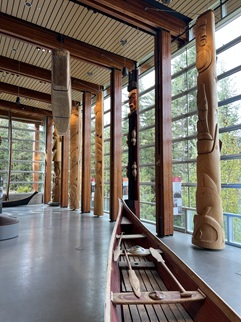 29) Squamish Lil'wat Cultural Centre, Whistler, BC, October 1, 2025 - After stretching our legs at Nairn Falls we continued southwest on some of the worst paved roads we've ever driven before pulling into the very touristy ski town of Whistler. We headed straight to the Squamish Lil'wat Cultural Centre in the middle of downtown Whistler. This was a great decision as the SLCC was a fantastic museum. We did a guided tour which was lead by a First Nation's lady and then walked around the museum on our own for another hour after the tour. Excellent! We stayed at a campground on the north edge of Whistler.