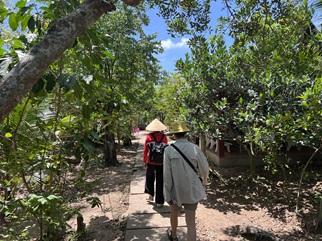 167) Thoi Son (Unicorn Islet), Bến Tre, Vietnam, February 27, 2025 - I was excited to see this part of Vietnam but honestly I was once again thrown into a complicated experience, one we have encountered a few other times in our travels. Rural villages are usually quite fascinating to visit so as a traveler I try to do that. However, I also acknowledge that the people living in villages aren’t interested in being gawked at by foreigners and that their daily lives aren’t a show for tourists. So a balance has to be struck where the rural people get compensated and I pay for my immense privilege of getting to travel there. So the problem for a tour company is to decide how they strike that balance. When it isn’t done well (in my opinion) I end up feeling like a walking ATM with each person I meet just trying to figure out how to withdraw their piece. When the tour places too much focus on the tourist I assume the villages feel like they are being taken advantage to display their way of life with nothing to gain. With that background I will say that our tour today mostly felt like the former to me. Unicorn island is primarily small villages growing fruit and coconuts. However, they have set up a tourist path where the ferry drops visitors off at a pier and then there is a series of stops - each providing a little information but then each one also trying to sell something.