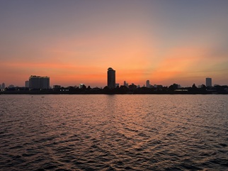 211) Mekong River Cruise, Phnom Penh, Cambodia, March 3, 2025 - We spent two hours on the cruise and our tour guide did a very nice thing - just as the sun set and the sky was glowing pink she asked us to spread out so we had some space alone and to think about the day. The boat cut its engine and we had a quiet moment to reflect on everything Cambodia has been through while gazing out on what it is busy becoming. It was a poignant moment.