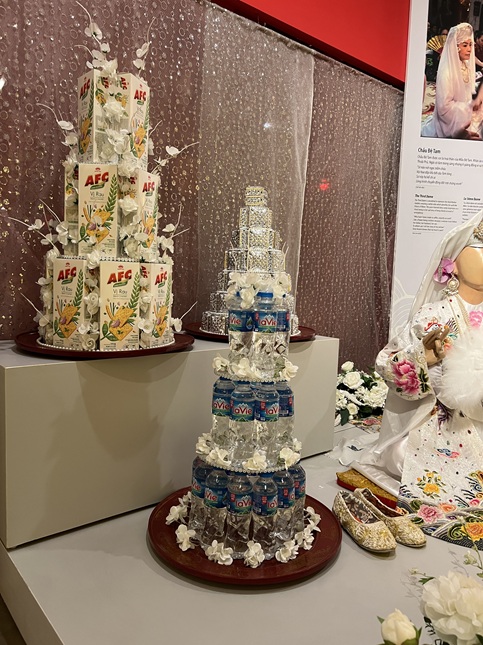 7) Bảo Tàng Phụ Nữ Việt Nam (Vietnamese Women's Museum), Hanoi, Vietnam, February 12, 2025 - All of the shrines have a wide variety of offerings on display. While fruit and incense are the most common there are also stacks of more mundane commercial foods like bottled water, fruit juice boxes and even soda.