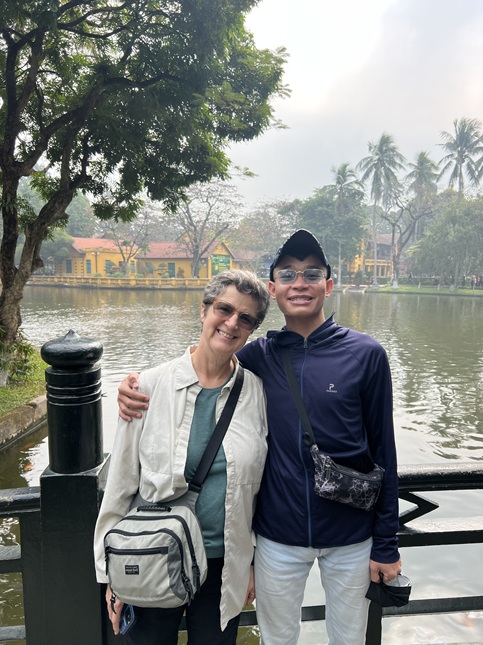 26) Ao cá Bác Hồ (Uncle Hồ' Fish Pond), Ho Chi Minh Mausoleum Complex, Hanoi, Vietnam, February 13, 2025 - Jonna and our guide Tony pose next to the lake that is located in the middle of the Ho Chi Minh Mausoleum Complex.