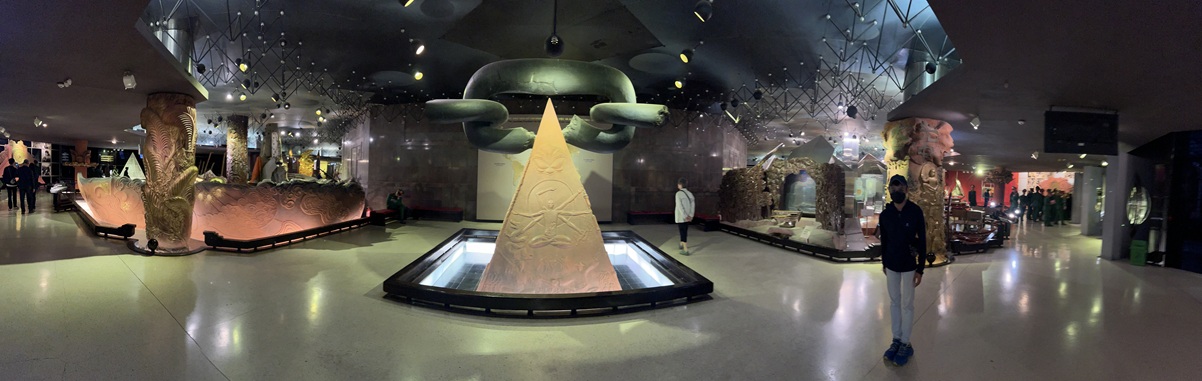 45) Bảo Tàng Dân Tộc Học Việt Nam (Vietnam Museum of Ethnology), Hanoi, Vietnam, February 15, 2025 - If there is such a thing as deep diving into a country’s culture then today Jonna and I took a deep breath and spent most of the day in one long free dive. We started, as usual, by getting up early and then fueling up with the hotel’s breakfast. After that we were straight out the front door. However, despite averaging about 9 miles of walking for the past three days our first stop today was just a bit too far to hoof it so we fired up the ride-share app Grab and got a ride. It was about a 30 minute drive and the weekend traffic was even crazier than what we’ve been seeing. There is a calmness to it - no one getting angry, no frequent accidents and no long blasts of the horn. But the traffic is completely unpredictable. Cars make U-turns from a parking spot on the right curb to go all the way over two "lanes" with seemingly no regard to the heavy traffic moving in both directions. Scooters thread through every tiny gap so there is a constant cloud of scooters like gnats also with little apparent pattern. Today we saw a dump truck make a right turn from the middle of the "lane" right across the front bumper of a car. But with all this chaos there is no apparent ego. No outrage. No reaction. Everyone just makes their way with maybe a quick toot of their horn when they want to make their presence known. It is really quite amazing. Anyway, we got to watch it all from just inches away out the windows of the car as we drive to the Vietnam Museum of Ethnology. This is a large museum outside the densely packed center of town where the Old Quarter and Ho Chi Minh Complex are located. This makes the museum an inconvenient place to visit for the tourist but if you go you quickly realize why it is located where it is - because it needs a lot of space.